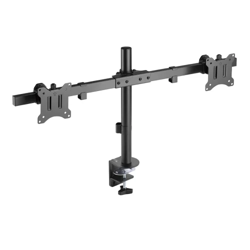 Muchos usuarios requieren dos monitores para realizar su trabajo, por lo que ahorrar espacio en el escritorio es un objetivo para cualquier brazo de monitor que elijan. Nuestro soporte es capaz de montar dos pantallas horizontalmente en una sola base, creando un espacio de trabajo ágil que organiza y aumenta la productividad. Diseñado para montar monitores de 17″ a 32″ pulgadas de forma rápida y sencilla con una carga de peso para cada monitor de hasta 9 kg.