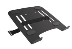 Soporte para notebook de acero sólido, alta ventilación, adaptable a soportes VESA. Inclinable hasta 60°.